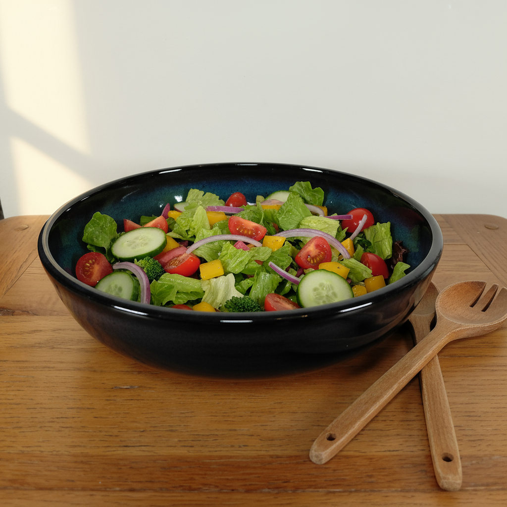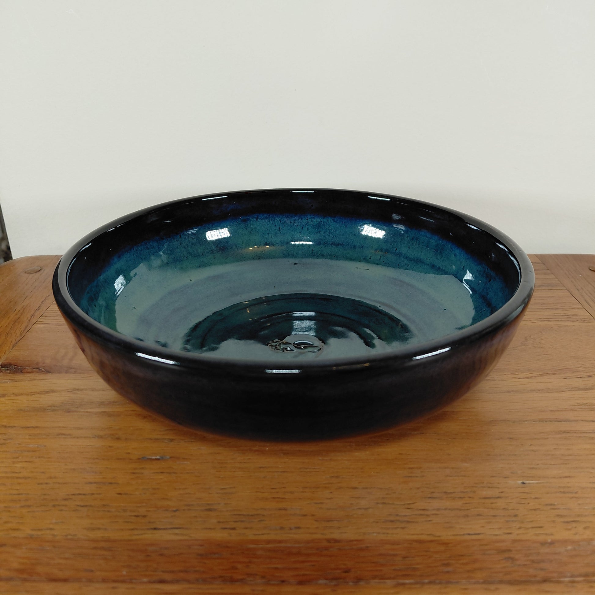 The glaze on the outside and around the rim is a deep blue, whilst inside you'll find a highly reflective green/blue colour which dances in the light. This glaze is a real showstopper!