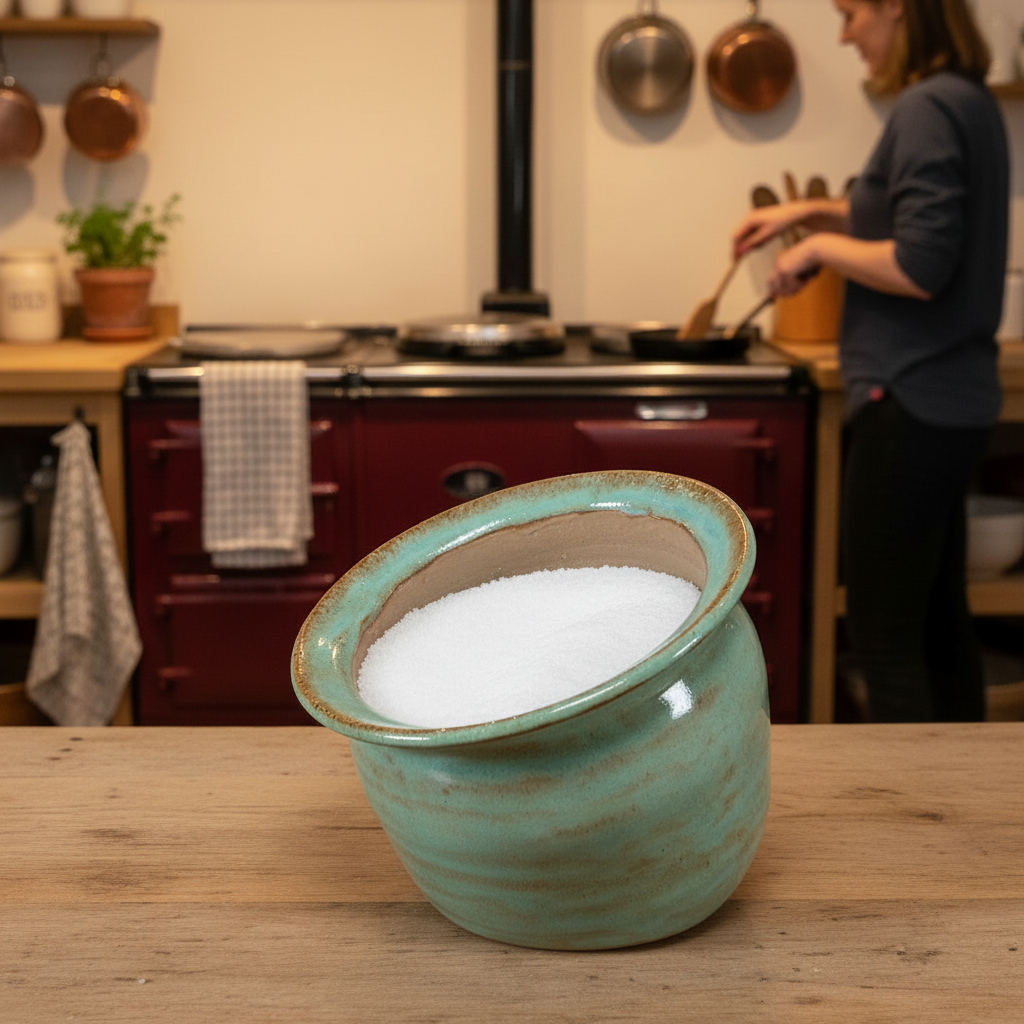 This charming piece features a wide, open mouth to keep salt within reach while cooking. The unglazed interior helps absorb moisture, keeping your salt dry and ready to use. Perfect for home cooks and food lovers alike, this piece makes a thoughtful gift or a must-have for your own kitchen.